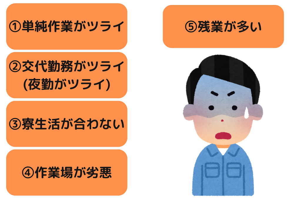 それでは期間工がきついと言われる理由を順番に解説していきます。