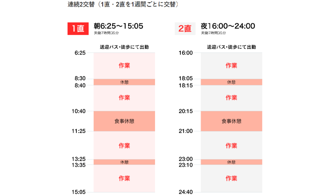 このように交代で働く、交代勤務という働き方が期間工がきついと言われる理由です。
